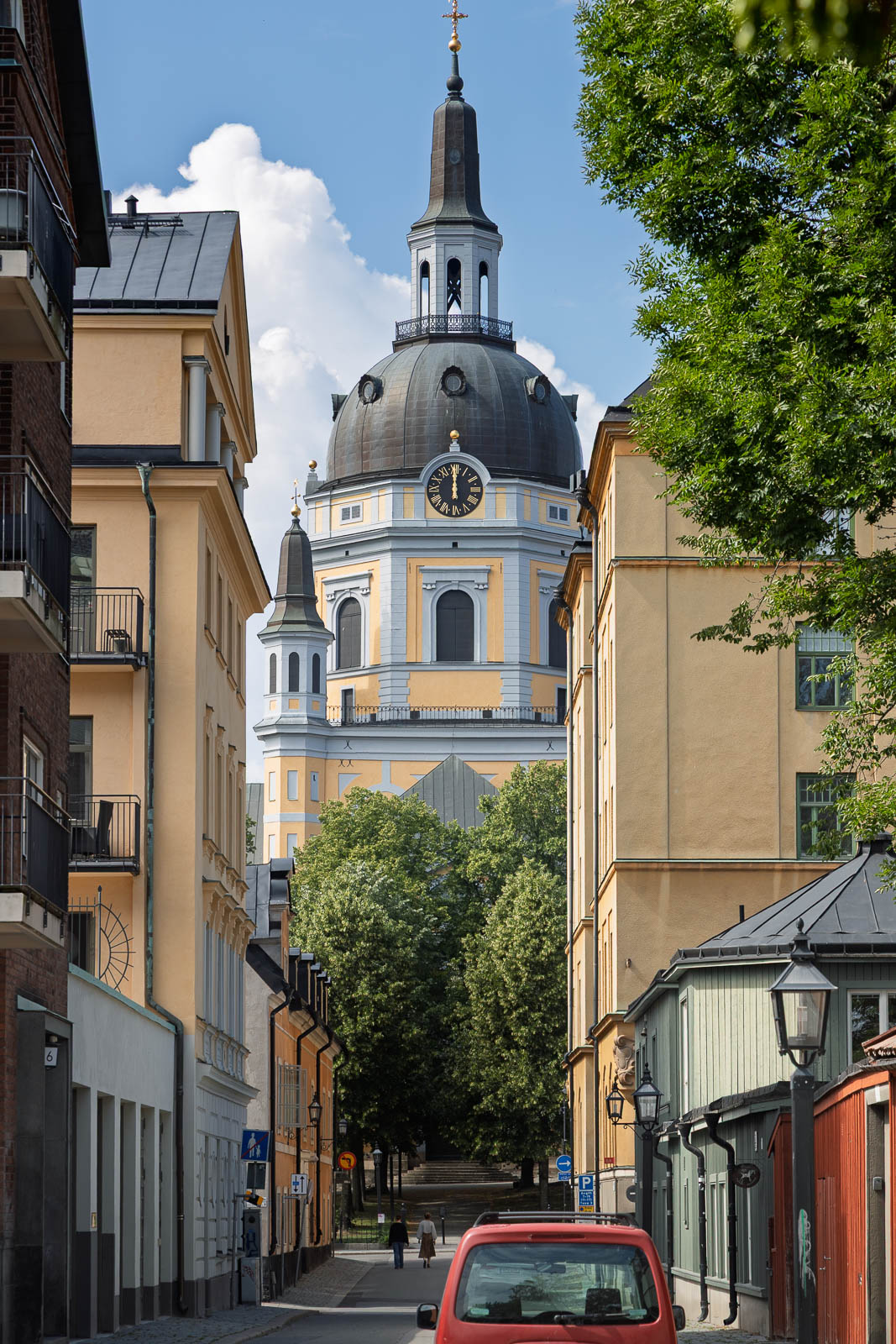 One of the best vantage points to admire the church in its full splendor is from Hornsgatspuckeln (the “Hornsgatan Hump”) on the street Hornsgatan. This elevated spot offers a striking view of the church, framed by the charm of Södermalm’s urban landscape.